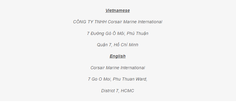 Once off the main road (Huynh Tan Phat), we are located about 800m on the left hand side and clearly signed as Corsair Marine with a large red gate.